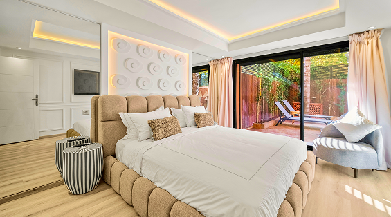 Cette chambre comprend également la climatisation, un coffre-fort et un dressing.